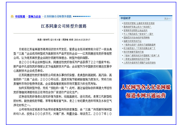 中經(jīng)聯(lián)播、新華網(wǎng)——江蘇同康公司轉(zhuǎn)型升級(jí)路