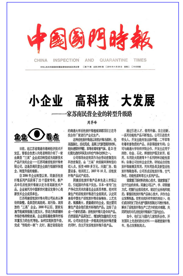 中國國門時報——小企業、高科技、大發展“一家蘇南民營企業的轉型升級路”
